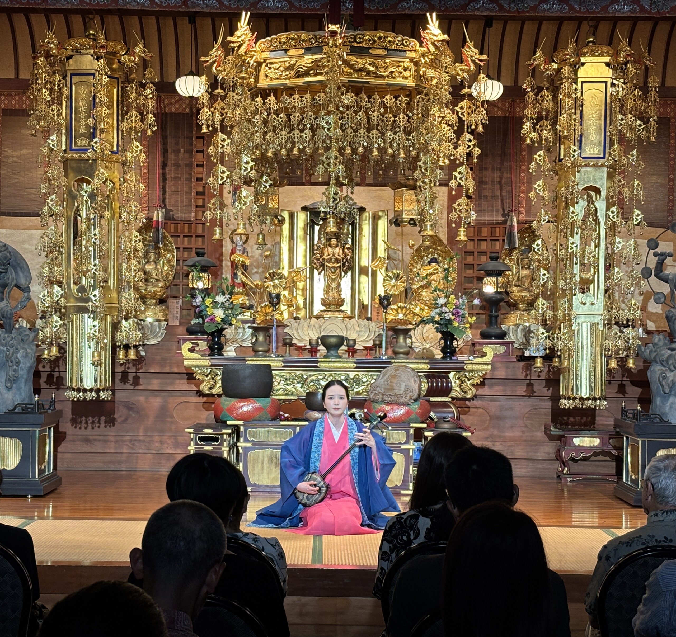 2024/9/21(土)長月の会 出演:親川遥 (歌三線)/照屋綺恵 (歌三線) /親田 鈴 (歌三線 胡弓)/鹿股小夏(琉球舞踊)/ 監修:新垣俊道 於:首里観音堂